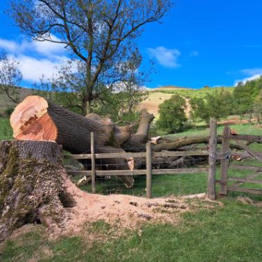 Our client required the removal of a very large Ash tree on their property. Sadly this Ash tree was suffering from Ash Die back, making it too dangerous to climb and dismantle in sections. After careful assessment and expertise, the decision was made to use the truck winches and tractor to perform an assisted fell. The fell was carried out perfectly with out causing any damage to the fence the tree had grown in to. The mighty Ash tree was dismantled onsite using the truck, chipper and tractor to make this job as efficient as possible. Our John Deere tractor was on hand to help with the clear up manoeuvring timbre stems that were too large to be chipped, that the client wanted to keep.